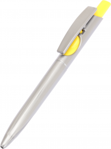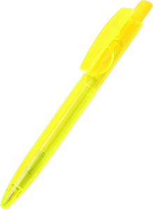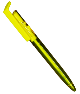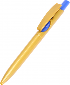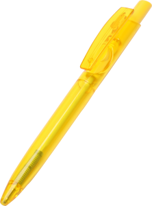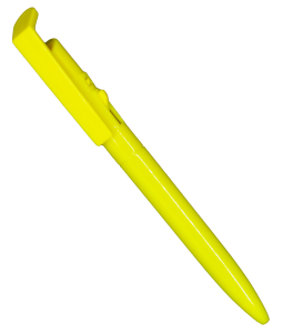 Caneta plástica esferográfica, design Italiano, com 900 metros de escrita, fabricação nacional. Com acionadores nas cores: amarelo, azul, branco, fumê, laranja, rosa, roxo, verde e vermelho. Quantidade mínima: 1000 peças.