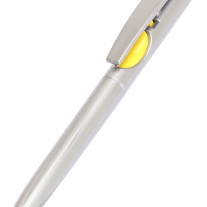 Caneta plástica esferográfica, design Italiano, com aproximadamente 900 metros de escrita, fabricação nacional. Detalhes nas cores: amarela, azul, laranja e vermelha. Quantidade mínima: 1000 peças.